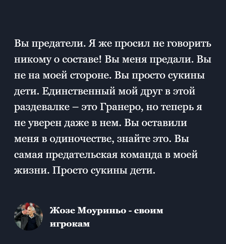 Во время этой речи Моуриньо больше других смотрел на Касильяса. Икер не выдержал и отправился в душ. Их взаимоотношения были разрушены.