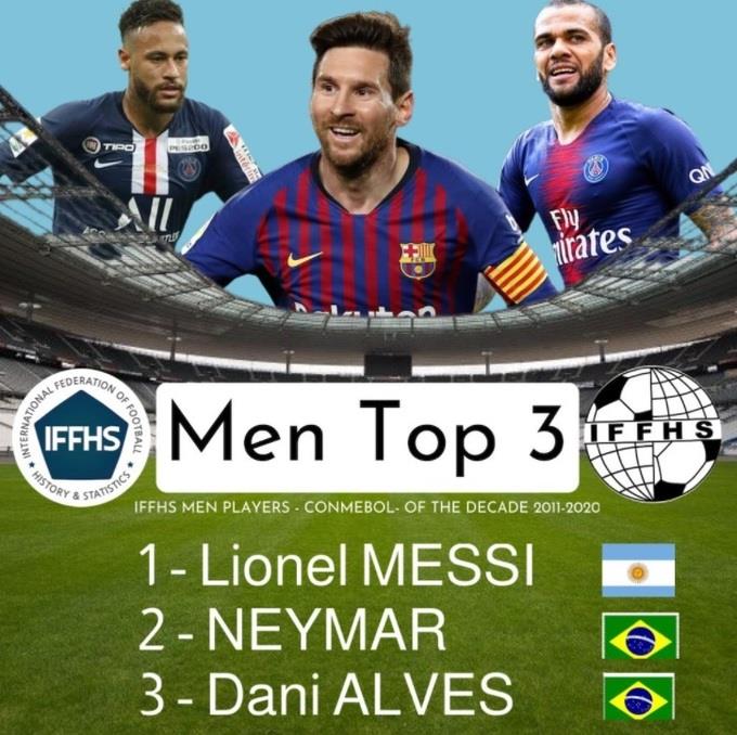 Нападающий Барселоны и сборной Аргентины Лионель Месси назван лучшим игроком десятилетия в Южной Америке по версии Международной федерации футбольной истории и статистики (IFFHS).