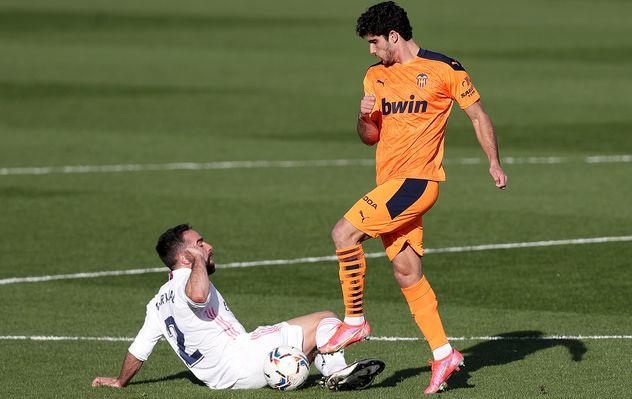 Однако в матче против действующего чемпиона Валенсия была слишком предсказуемой. Мадридскому Реалу не составило труда превратить отчетливо ощутимое преимущество в стартовом отрезке в относительно быстро забитый мяч. Карим Бензема на 12-й минуте прицельным ударом с подкруткой под дальнюю штангу от левого угла штрафного завершил передачу Тони Крооса из глубины поля. "Галактикос" могли бы напороться на проблемы после этого успеха, однако мышечное повреждение у Дани Карвахаля на 25-й минуте лишь ненадолго сбило из атакующие порывы.