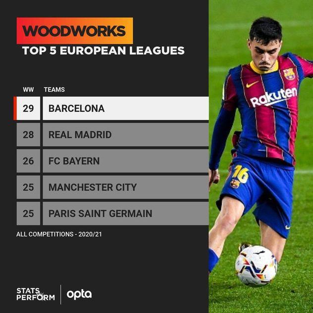 Как сообщает статистический портал Opta, данный эпизод позволил подопечным Рональда Кумана единолично возглавить своеобразный рейтинг наиболее невезучих команд из топ-5 европейского футбола, которые чаще остальных проверяют на прочность каркас ворот.