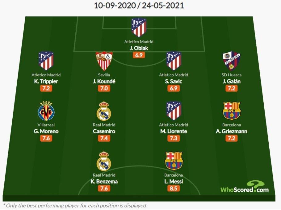 Авторитетный портал WhoScored опубликовал символическую сборную прошедшего сезона испанской Ла Лиги.