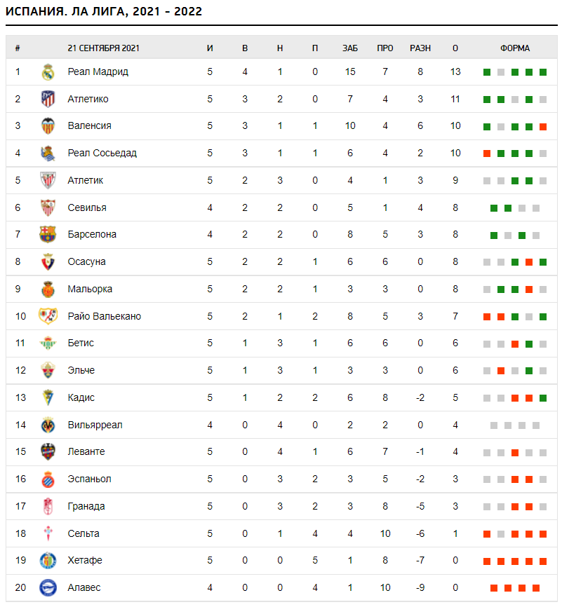 - Сельта набрала лишь одно очко после пяти первых туров Ла Лиги. Худший результат галисийцев на этом этапе соревнований за всю историю с сезона-1982/83, когда они вылетели во второй дивизион.