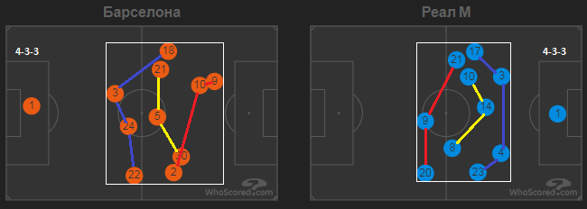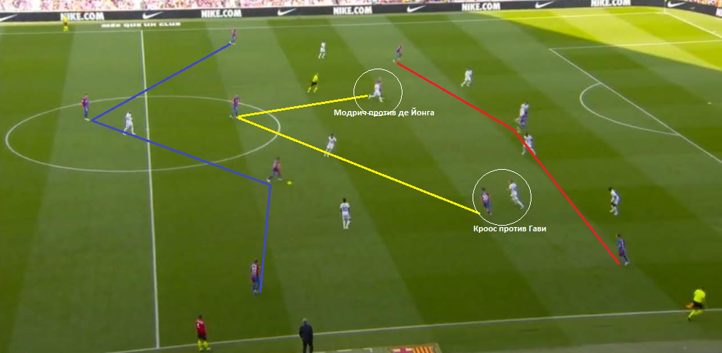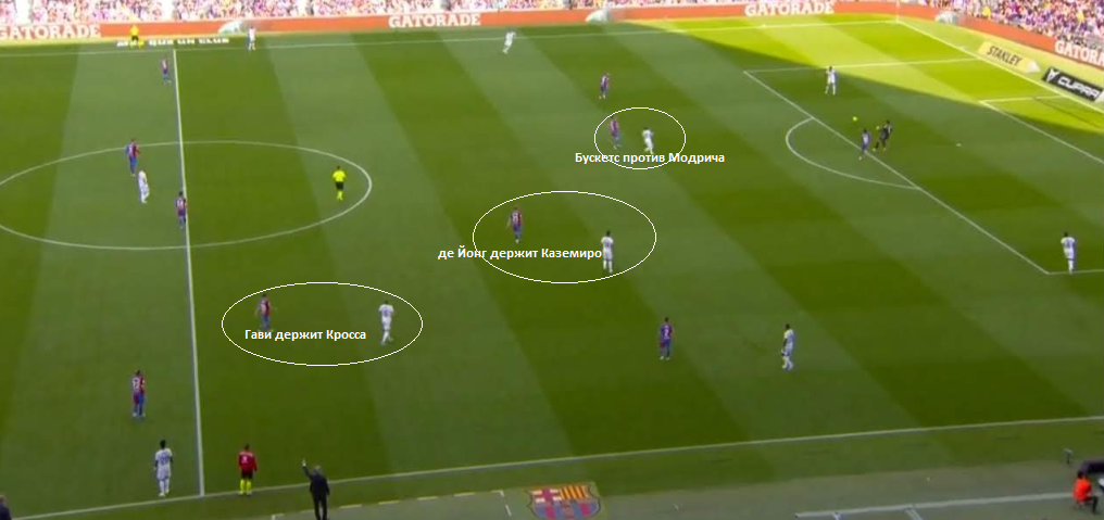 В частности, у Реала в позиционной обороне Кроос и Модрич старались контролировать своих коллег по Барсе – Гави и де Йонга соответственно.