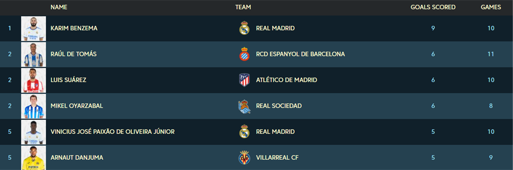 - Рауль де Томас стал первым игроком Эспаньола в этом столетии, выдавшем две забивные серии по четыре игры кряду в одном календарном году – январь/февраль и октябрь 2021 года.