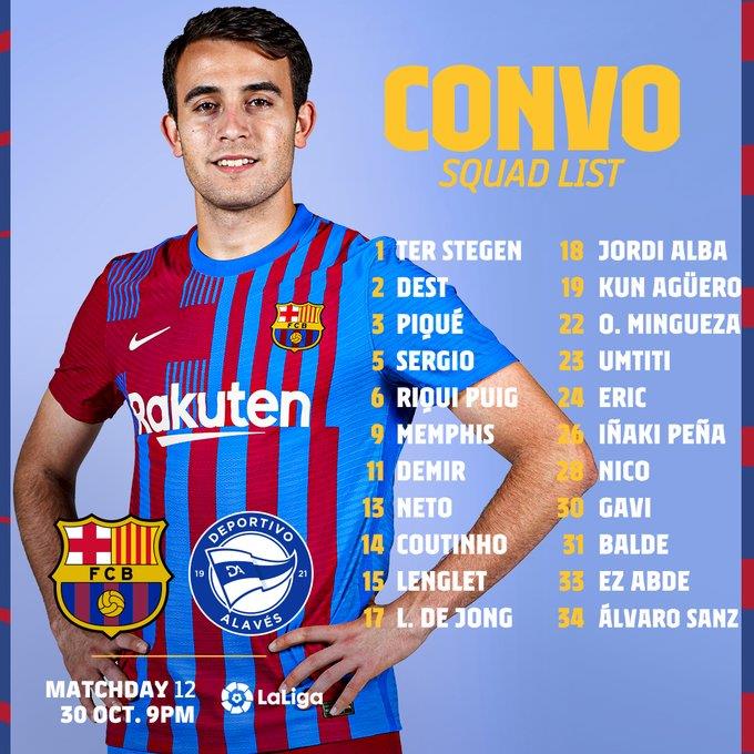 Исполняющий обязанности главного тренера Барселоны Серхи Бархуан огласил заявку команды на матч 12-го тура Примеры против Алавеса.