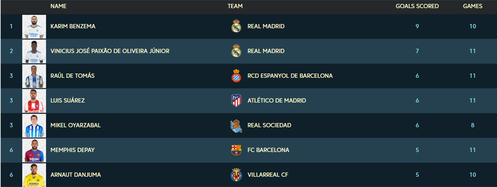 - Винисиус забил шесть голов в 11 матчах Ла Лиги-2021/22, столько же, сколько в двух предыдущих сезонах турнира вместе взятых (шесть голов в 64 матчах).
