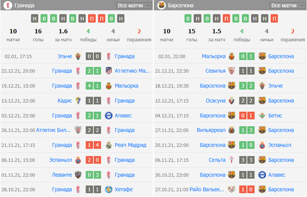 Поединки под руководством Хави на старте 2022 года даются каталонской Барселоне с не меньшими трудностями, чем после прихода испанского наставника на свой пост в клубе. В матчах против Мальорки в чемпионате (1:0) и Линареса в Кубке Испании (2:1) по итогу "блаугранас" все равно дожимали соперников за счет банального преимущества в классе, однако такой подход работает до первого серьезного сбоя, а хозяева Нуэво Лос Карменес вполне способны обеспечить все необходимые для него условия. Так или иначе, но две предыдущих очных встречи на Камп Ноу неизменно оставались за Гранадой.