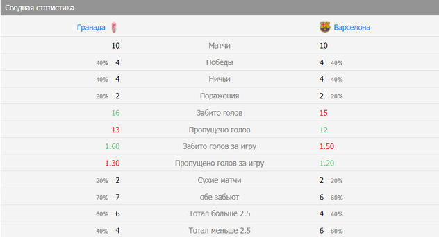 Команда Роберта Морено сейчас находится в достаточных кондициях для того, чтобы замахнуться и на третий положительный для себя исход противостояния против именитого оппонента. Сенсационный вылет из Кубка Испании от скромной Манчи (1:0) остался в прошлом году, а предыдущие три игры в чемпионате "насриды" неизменно набирали очки. В том числе — в игре против действующего чемпиона страны, мадридского Атлетико (2:1). Цепочка неудачный выступлений на старте сезона потянула и продолжает удерживать Гранаду внизу турнирной таблицы, однако коллектив Морено выглядит далеко не безнадежным. Тем более, на фоне настолько неустойчивой Барселоны.