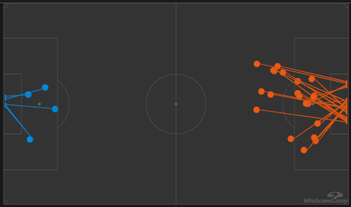 Разумеется, удары хозяев поля обозначены оранжевым цветом.