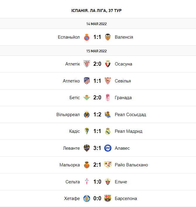 Іспанська Ла Ліга підбиває підсумки минулих матчів чемпіонату Іспанії-2021/22 і визначила п'ять найкращих сейвів голкіперів у 37 турі.