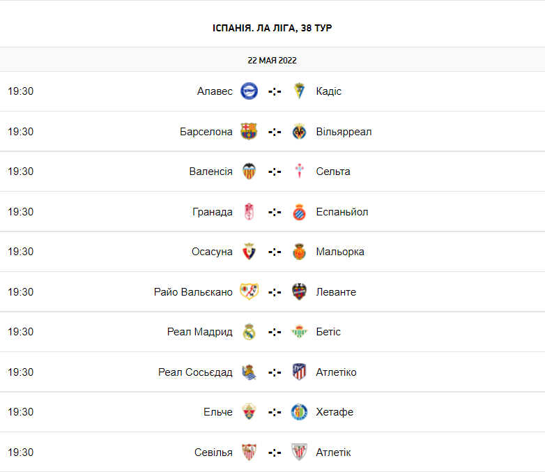Розклад матчів 38 туру Ла Ліги-2021/22