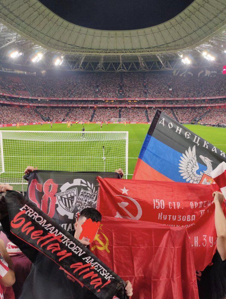 Окрім футболу поєдинок на Сан-Мамесі запам'ятався свинською поведінкою декого з місцевих вболівальників. Відбиті фанати на одному з секторів вивісили прапори срср та днр, тим самим підтримавши країну-агресора. Це не перша політична акція фанатів (хоча ні, це слово може образити справжніх вболівальників), котрі й раніше подібним чином висловлювались на різні теми. Сподіваємося, що кожного винуватця цього позориська жорстко покарає клуб.