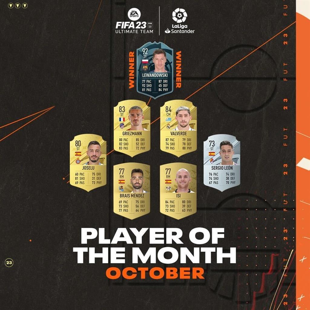 Традиційне голосування серед уболівальників щодо найкращого футболіста місця в іспанський Ла Лізі цього разу містило двох очевидних фаворитів у особі нападника каталонської Барселони Роберта Левандовські та півзахисника мадридського Реала Федеріко Вальверде, який був відзначений аналогічною нагородою за вересень.