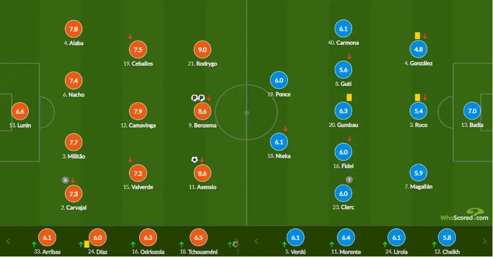 У стартовому складі вийшов українець Андрій Лунін. Голкіпер отримав оцінку 6,6 від порталу WhoScored – найгіршу серед усіх гравців стартового складу.
