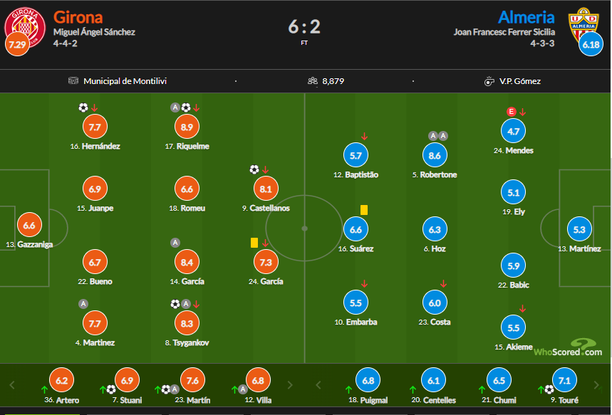 Жирона в рамках поєдинку двадцять другого туру елітного дивізіону чемпіонату Іспанії приймав на своєму полі Альмерію та здобув перемогу з рахунком 6:2.