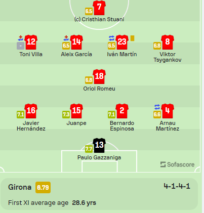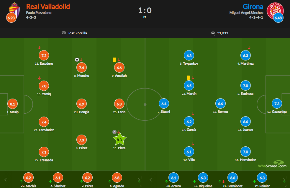 Статистичний портал WhoScored видав досить середню оцінку футболісту — 6,3. Найкращим у складі Жирони за їх версією був воротар Гассаніга — 7,3.