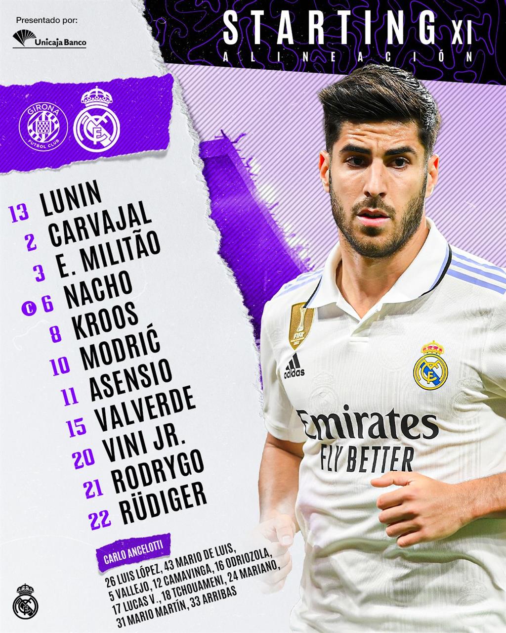 Реал: Лунін — Карвахаль, Мілітао, Рюдігер, Начо — Кроос, Модріч, Вальверде — Родріго, Асенсіо, Вінісіус