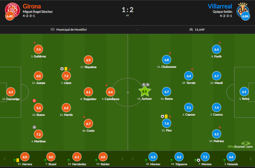 Найкращим гравцем зустрічі став нападник Вільярреала Джексон. Його гру оцінили в 8,9 бала.