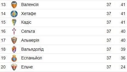 Тут також інтрига принаймні за одне місце була марною через невдачу Ельче. Проте далі додався Еспаньйол, а ще одну сходинку може зайняти хтось з чергових невдах. Претендентів багато — від Валенсії до Вальядоліда. Треба дивитися на результат.