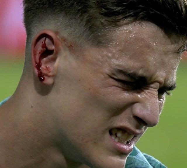 Після гри Гаві показав наслідки удару суперника з його вуха.