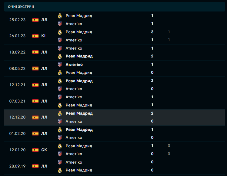 Атлетіко не може обіграти Реал вже три матчі поспіль та спробує нарешті перервати цю серію невдач на своєму полі. Навряд чи обидві команди бездумно кинуться в атаку, вони будуть діяти обережно та сподіватись на свій шанс. Очікуємо, що в цьому матчі буде зафіксовано нічний результат