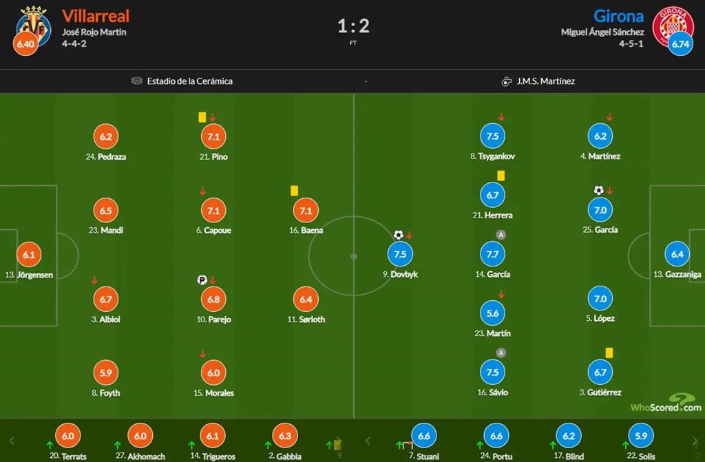 Авторитетний статистичний портал WhoScored оцінив дії Циганкова та Довбика у 7,5 балів, що є одними з найкращих оцінок у матчі. Більше за них отримав лише півзахисник Жирони Алейш Гарсія — 7,7 балів.