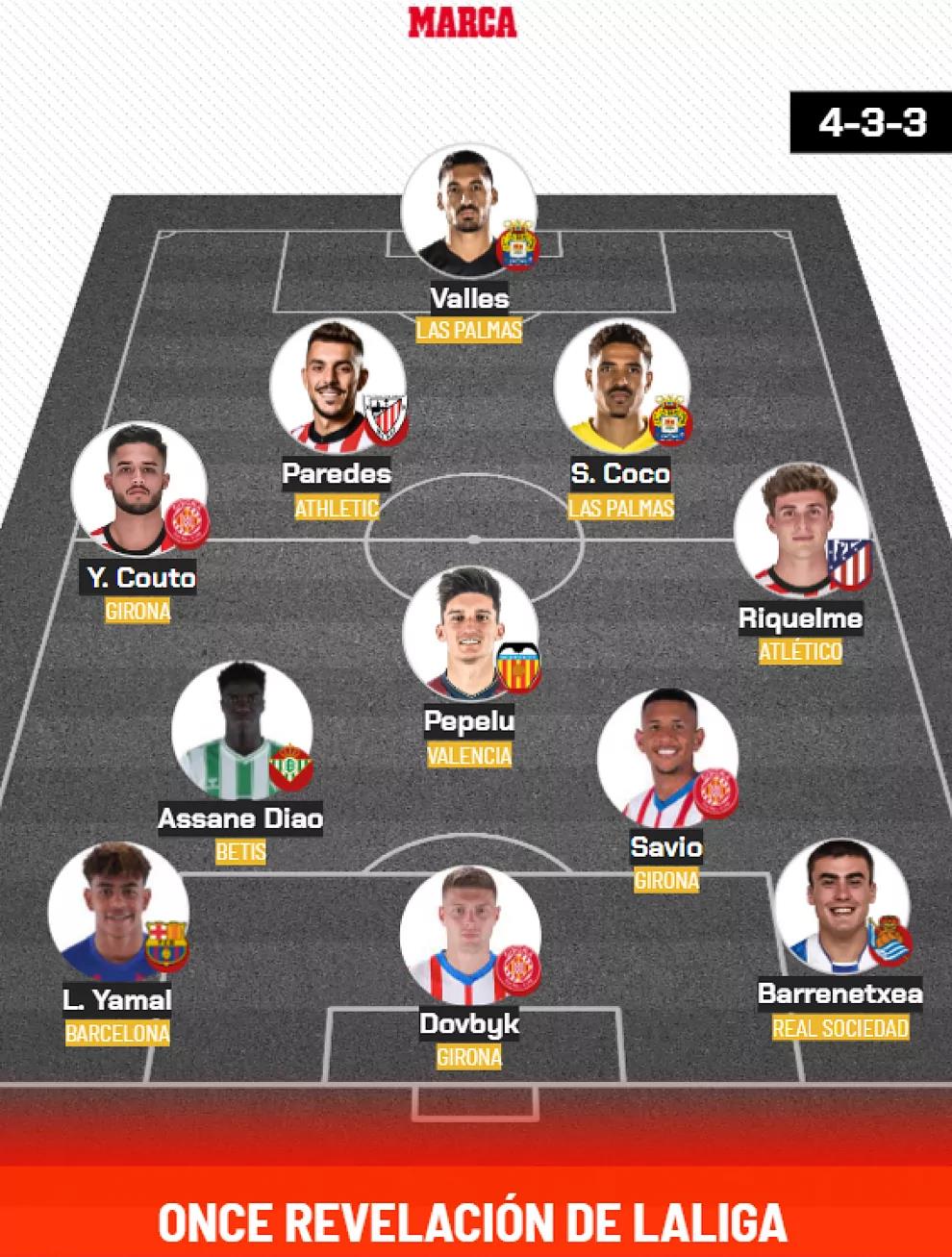 Після 13 зіграних турів іспанської Ла Ліги авторитетна іспанська газета Marca представила символічну збірну відкриттів сезону-2023/24.