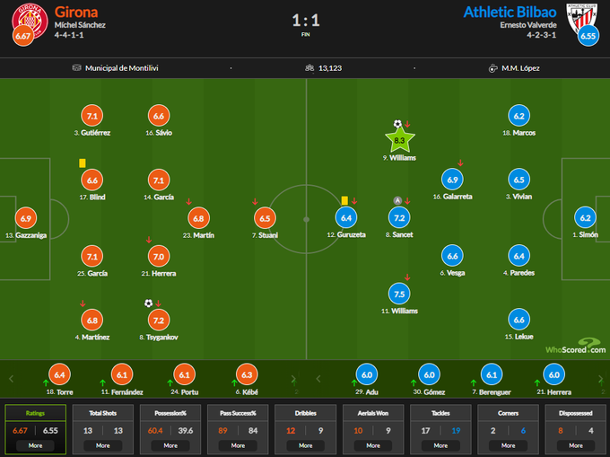 Найкращим гравцем матчу був визнаний Іньякі Вільямс, який врятував "басків" від поразки. Його оцінка – 8,3 балів.