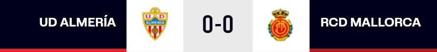 Альмерія зіграла нульову нічию з Мальоркою (0:0). Мальорка очікувано виглядала впевненіше за Альмерію, але скористатися своїми моментами не зуміла, поділивши очки з повним аутсайдером турніру.
