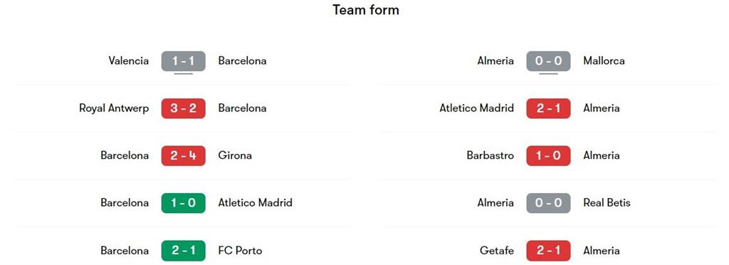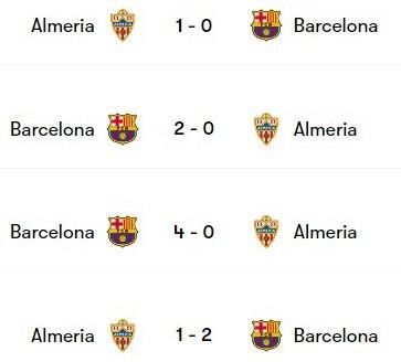 Обидві команди мали можливість змагатися одна з одною в лютому цього року. Матч завершився сенсаційно, бо три очки дісталися Альмерії, яка на власному стадіоні перемогла з рахунком 1:0. Раніше Барселона перемагала цього опонента протягом семи матчів поспіль.