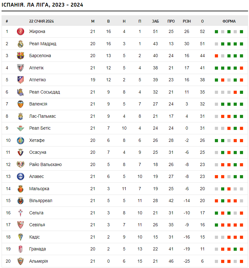 Зазначимо, що програму 21-го туру чемпіонату Іспанії сьогодні, 22 січня, закриватимуть Гранада та Атлетіко.
