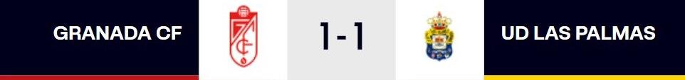 - Гранада вдома зіграла внічию з Лас-Пальмасом (1:1). Команди обмінялися голами в кожному з таймів.