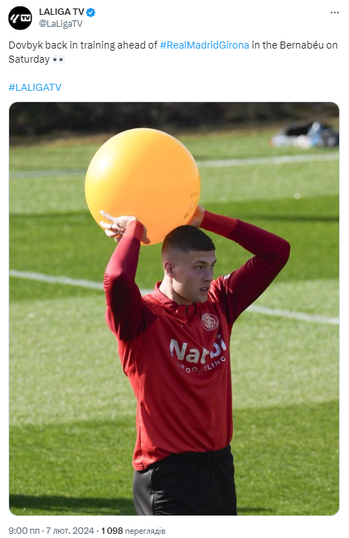 Як повідомляє LALIGA TV, український нападник каталонського клубу Артем Довбик, який напередодні отримав пошкодження та ризикував не зіграти проти "вершкових", повернувся до тренувань.