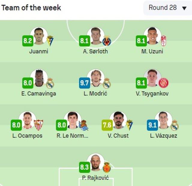 Найкраща оцінка у команді тижня у півзахисника мадридського Реала Луки Модрича – 9,7 балів.
