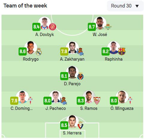 Український нападник Жирони Артем Довбик потрапив до символічної збірної минулого 30 туру іспанської Ла Ліги за версією SofaScore.