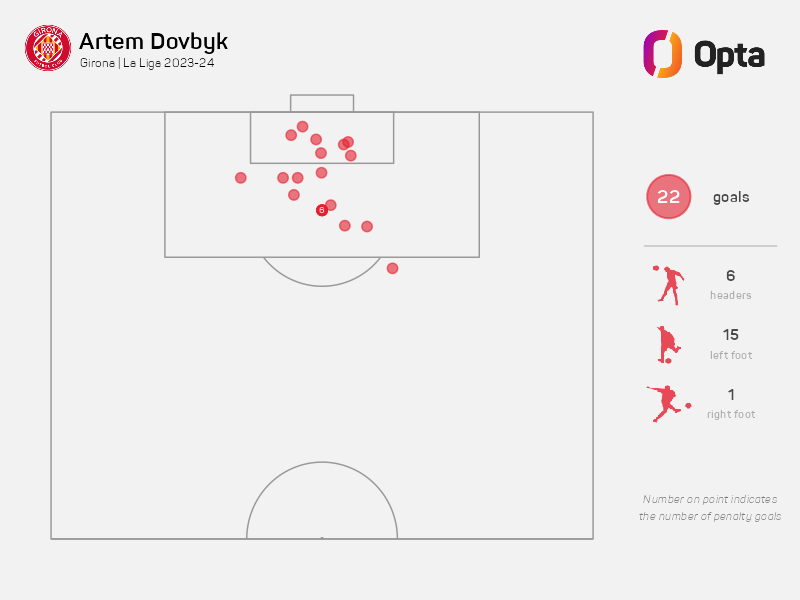 За даними OptaJose, Довбик встановив новий рекорд за кількістю голів за каталонський клуб протягом однієї кампанії турніру. У сезоні-2017/18 Ла Ліги уругвайський центрфорвард Крістіан Стуані записав на свій рахунок 21 результативний удар за Жирону.