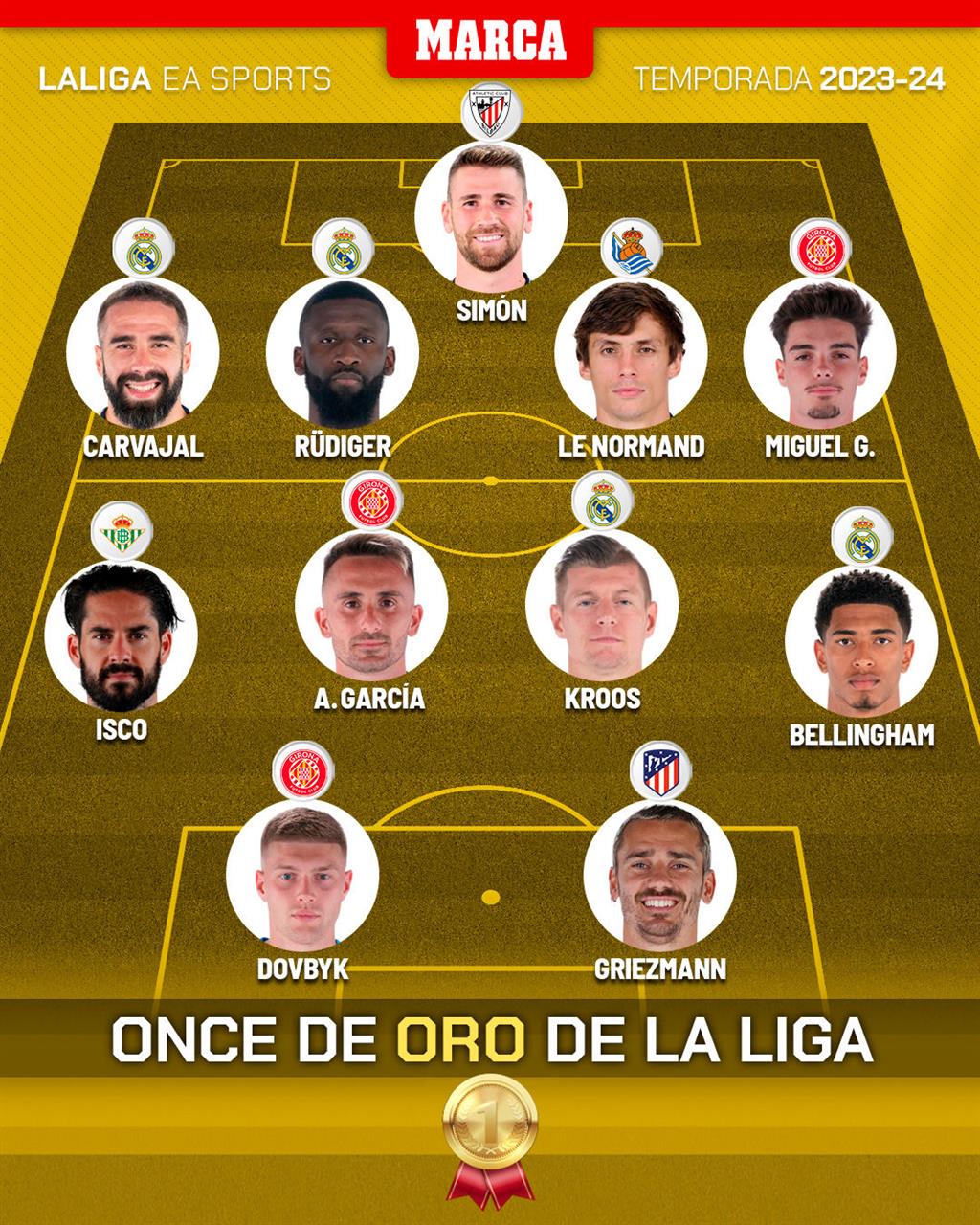 У головну "золоту" збірну потрапив український нападник Жирони Артем Довбик, який став найкращим бомбардиром чемпіонату Іспанії у своєму дебютному сезоні, забивши 24 голи.