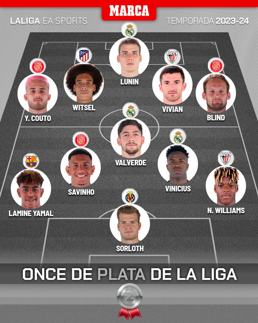 У срібну збірну потрапив український воротар мадридського Реалу Андрій Лунін, який провів 21 матч у чемпіонаті, з яких 10 на нуль за 17 пропущених м'ячів.