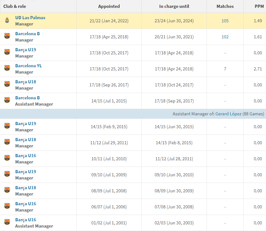 Із січня 2022 року іспанський спеціаліст очолював Лас-Пальмас. Під його керівництвом команда провела 105 матчів. У 49-річного Гарсії Піменти також є досвід роботи з різними молодіжними колективами Барселони.