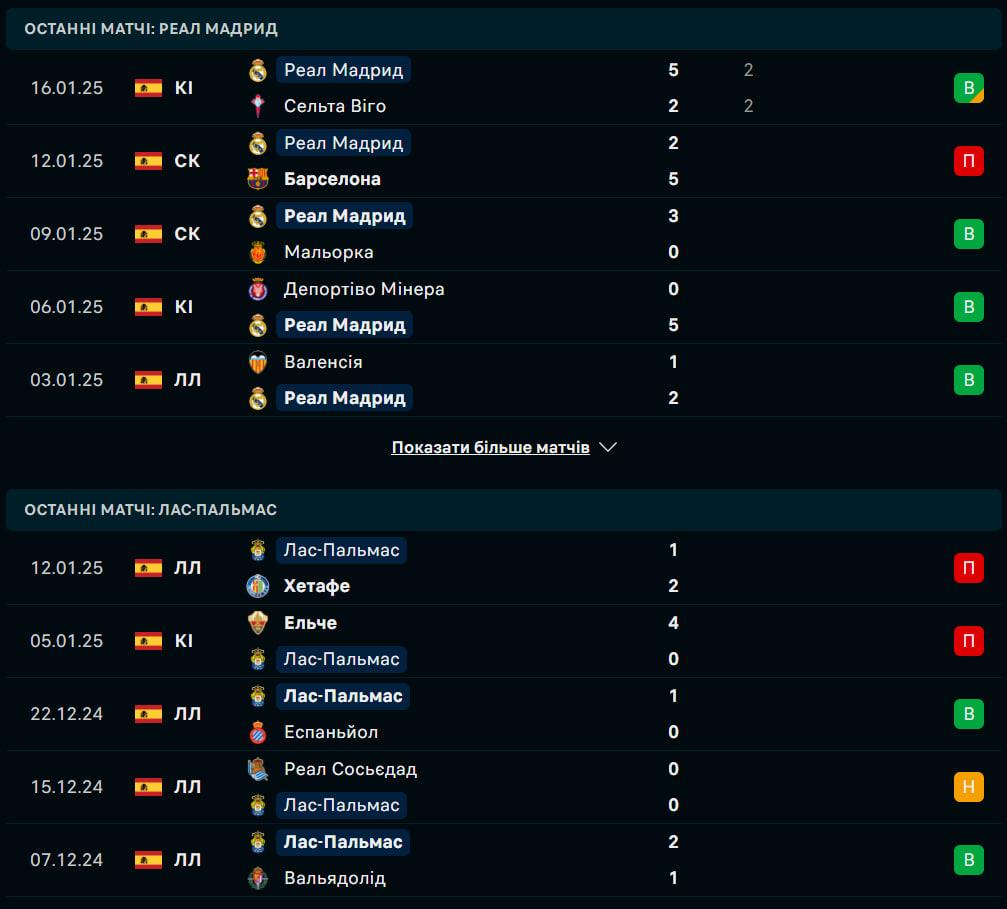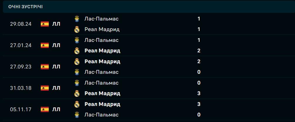 У Лас-Пальмаса також є нещодавня нічия на Бернабеу, коли команди зіграли внічию 3:3 у березні 2017 року, але гості не розпочали 2025 рік на позитивній ноті, програвши 4:0 Ельче в Копа дель Рей 5 січня, а потім поступившись 2:1 вдома Хетафе в рамках чемпіонату минулого вікенду.