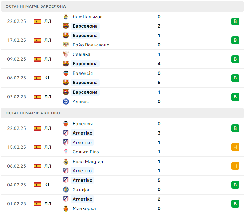 Барселона минулими вихідними досягла бажаного результату, не дозволивши суперникам обійти себе в турнірній таблиці чемпіонату Іспанії. Із рахунком 2:0 "блаугранас" на виїзді впоралися з Лас-Пальмасом. Команда Гансі Фліка не знає смаку поразок у 2025 році (13 матчів поспіль), а наразі останньої своєї невдачі вона зазнала якраз у домашньому матчі проти Атлетіко (1:2) у грудні.