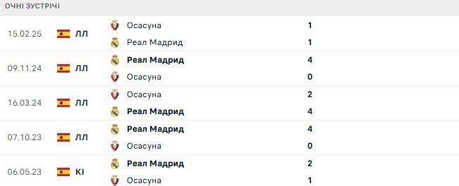 Реал не програвав Осасуні в Ла Лізі з січня 2011 року, що демонструє масштаб завдань, які стоять перед гостьовою командою. Проте востаннє команди зустрічалися між собою у лютому 2025 року, коли рахунок був – 1:1.
