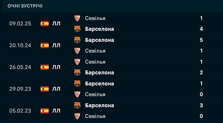 Барселона домінує в очних зустрічах із Севільєю, вигравши 117 із 201 матчу в усіх турнірах, і не програвала цій команді в чемпіонаті з жовтня 2015 року. “Блаугранас” є явними фаворитами цього поєдинку, спираючись на атакувальну міць. Однак Севілья, підкріплена домашньою підтримкою та нещодавніми успіхами, може створити проблеми, якщо скористається втомою Барселони після європейського матчу. Для “Лос Нервіоненсес” позитивний результат може стати поштовхом для боротьби за єврокубкові місця, тоді як Барселона прагне зміцнити лідерство перед складним графіком.