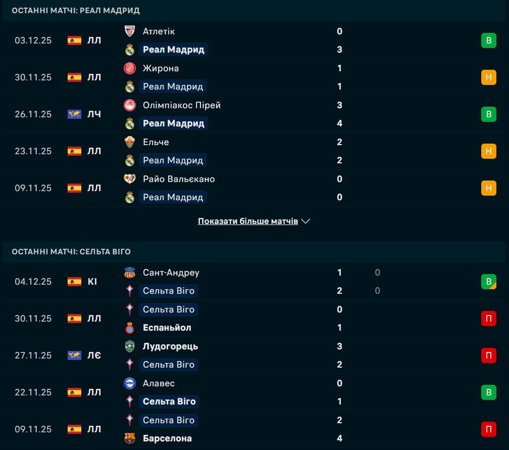 Нещодавня невдача "бланкос" призвела до того, що вони поступилися першим місцем у таблиці Барселоні, але вони націлені на чергові три бали у неділю ввечері. Команда Хабі Алонсо цього сезону вражаюче грає на домашньому полі, вигравши всі шість своїх матчів ліги і забивши при цьому 14 голів. Проте, Сельта цього сезону є однією з найсильніших виїзних команд дивізіону, набравши 11 очок у шести матчах. Реал Мадрид має 11-матчеву переможну серію проти Сельти у всіх змаганнях, включаючи перемогу 3:2, коли команди зустрічалися у відповідній грі минулого сезону. Будь-який результат, окрім трьох очок, буде черговою невдачею для "вершкових", які наступного тижня продовжать свою кампанію Ліги чемпіонів матчем вдома проти Манчестер Сіті.