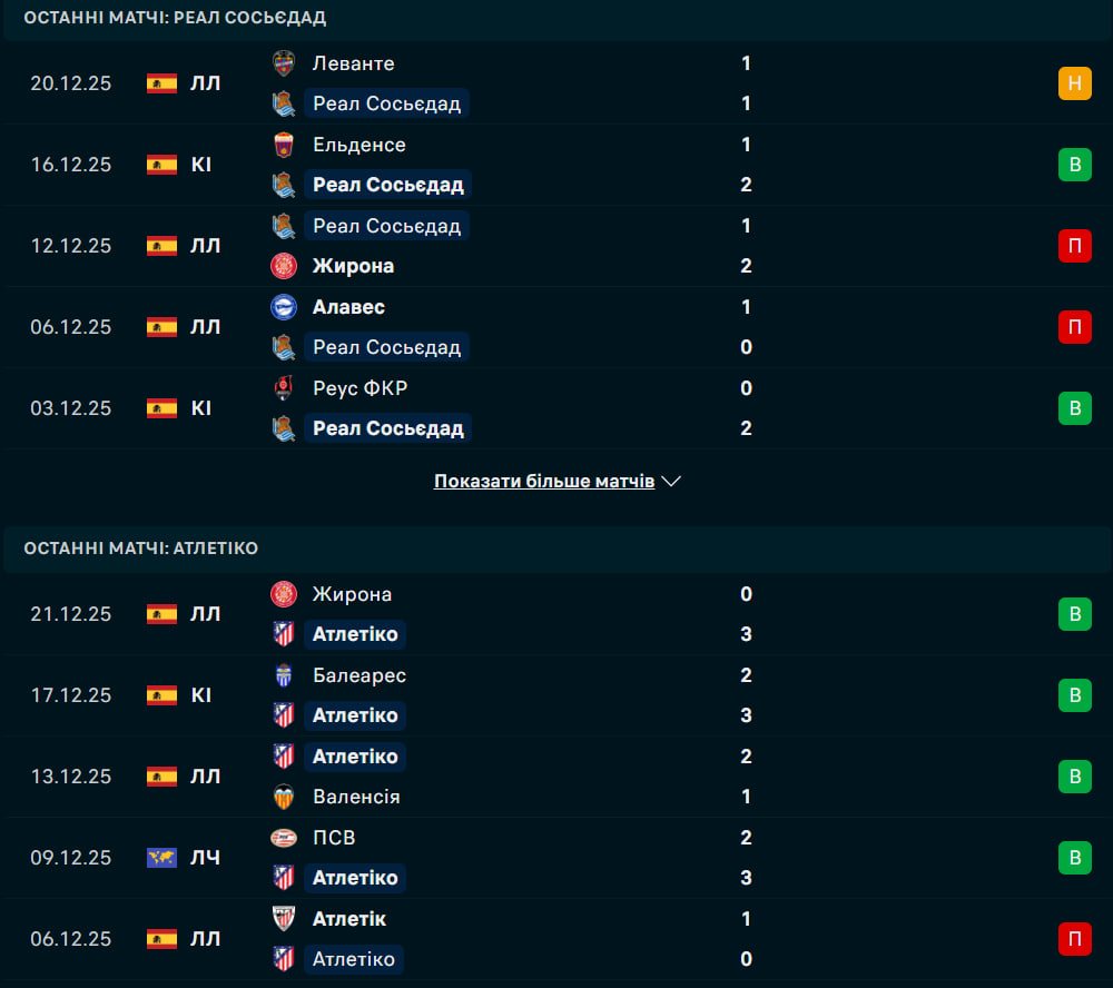Історія очних зустрічей останніх років говорить не на користь басків — Реал Сосьєдад не може обіграти мадридців у Прімері вже понад шість років. Новий тренер господарів, імовірно, спробує змінити тактичний малюнок на більш агресивний, але досвідчений Атлетіко вміло карає за будь-який вільний простір. Очікується в'язка гра з великою кількістю єдиноборств у центрі поля, де досвід Коке та енергія Барріоса мають дати гостям перевагу. Якщо баски не зможуть нейтралізувати швидкі переходи Атлетіко з оборони в атаку, втримати бодай нічию на Реал Арені їм буде вкрай складно.