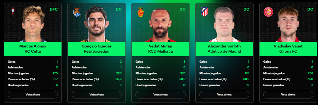 Окрім Ваната, на нагороду претендують Александр Серлот з Атлетіко Мадрид, Гонсалу Гедеш із Реал Сосьєдад, Ведат Мурікі з Мальорки та Маркос Алонсо із Сельти.