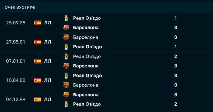 Для Ов'єдо гра на Камп Ноу буде справжнім випробуванням на витривалість, де головним завданням стане стримування атакувального тріо Ямаль — Рафінья — Левандовські. Хоча статистика останнього візиту "синіх" до Барселони у 2001 році зафіксувала їхню перемогу 1:0, сьогоднішній розклад сил робить будь-який результат, крім впевненої вікторії господарів, величезною сенсацією.