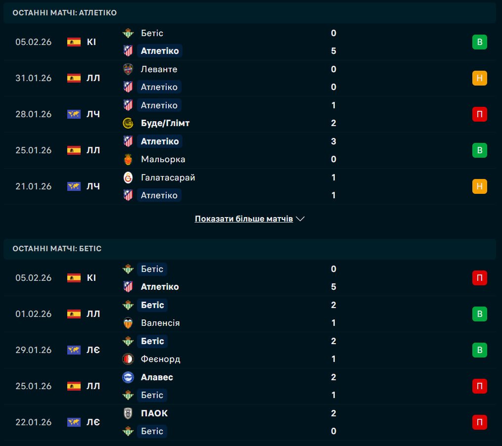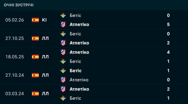 Мадридський Атлетіко прийматиме на власному полі севільський Реал Бетіс, намагаючись підтвердити свій статус фаворита після нещодавнього розгрому суперника в кубковому протистоянні.