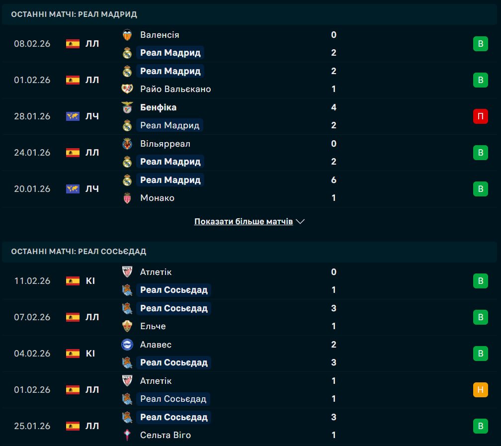 Мадридці мають у активі 18 перемог і демонструють чудову форму, вигравши сім останніх матчів поспіль, включаючи перемогу над Валенсією (2:0). Оскільки Барселона гратиме лише в понеділок, підопічні Альваро Арбелоа можуть вийти на першу сходинку вже в суботу. "Бланкос" традиційно потужно грають на Бернабеу, а їхня безпрограшна серія проти басків триває з травня 2023 року. Проте команді доведеться обійтися без Беллінгема та Мілітао, а участь Мбаппе та Родріго залишається під питанням.