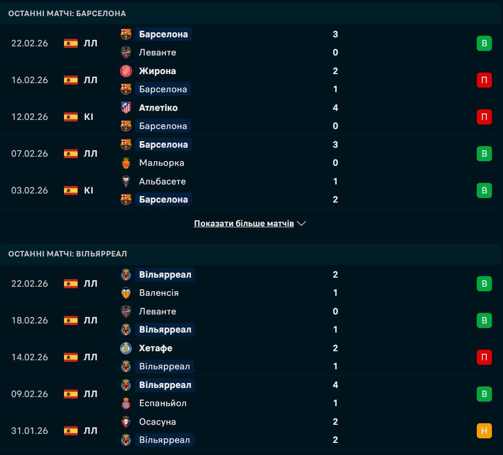 Барселона прагнутиме зміцнити своє лідерство в Ла Лізі у домашньому протистоянні з Вільярреалом. Наразі каталонці випереджають Реал Мадрид на один бал, тож перемога дозволить їм відірватися від переслідувача на чотири очки до понеділка.